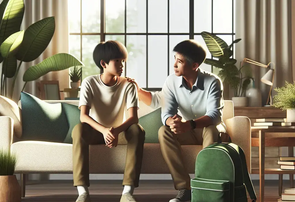 - “Ayah pengin ngerti dulu dari sisi kamu, apa yang bikin sekolah terasa berat belakangan ini?”